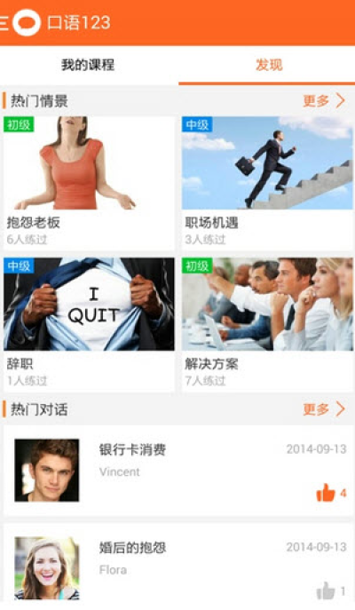 日常、旅行、商务...各种分类各种难度,总有一个适合你,从身边的实用情景开始,轻松学会英语对话。