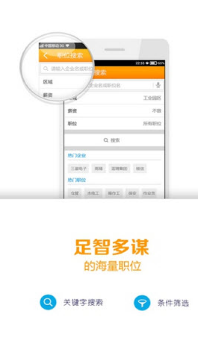4.附近职位,核心功能,定位当前的位置,搜索展现附近的岗位,针对想在家附近工作的打工者提供的特色服务;