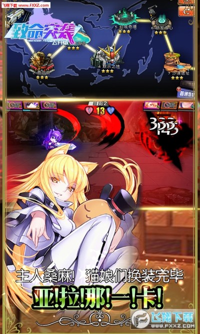 《致命突袭飞升版》是一款以未来都市为背景的COS横版战斗卡牌手游, 融合了卡牌养成与横版动作战斗的元素,游戏以崩坏的二次元世界为背景,200+乖萌CP一秒COS猫娘,化身自带吊炸天技能的使徒,数百个经典动漫关卡,数百种服饰与角色搭配,专为御宅族准备的社交系统,轻松互动,面基作战。骨骼动画一通萌战,还能带领一大波猫耳萌妹子拯(hui)救(mie)世界啥的,呼呼~