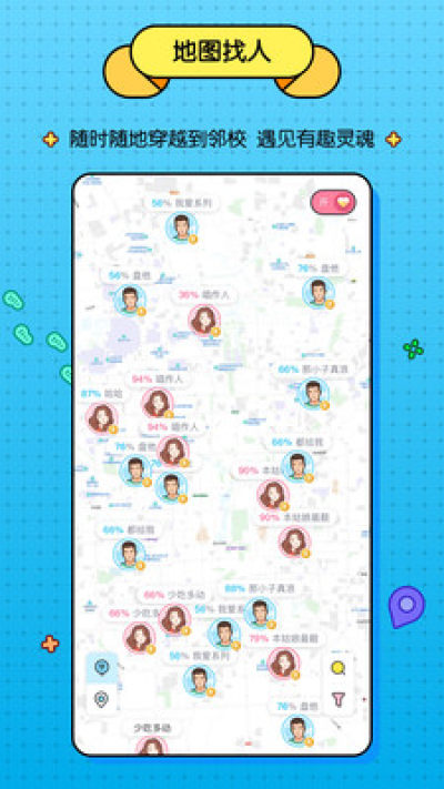 -【地图找人】开启实时位置,随时随地找到身边有趣的灵魂,开启学校位置,穿越到邻校,找到兴趣相投的TA。
