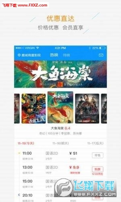 在线选座,一键购买,支持会员卡支付,省去排队烦恼;
