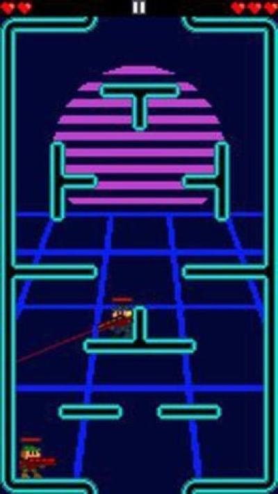 2、玩家控制小人移动来躲避路上怪的攻击,它们也都拥有血条,需要多枪才能打死;