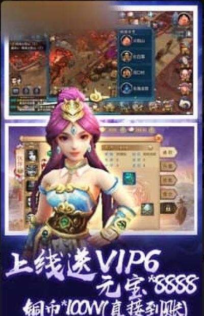 1、上线赠送满级VIP,海量钻石18888,巨量银币200W,登陆即送!