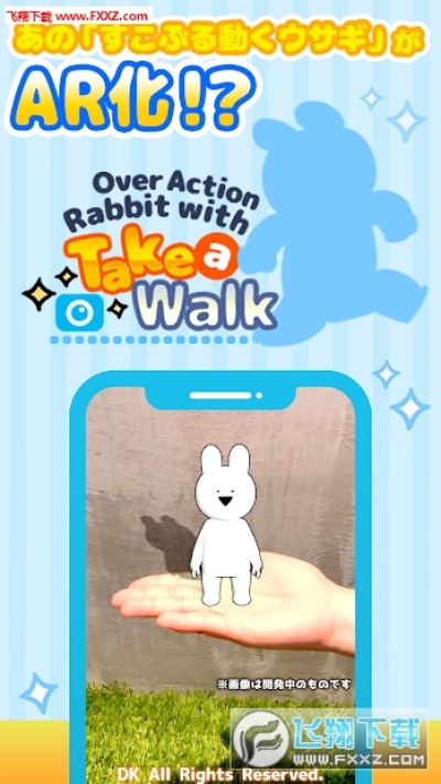 《好动兔子爱散步》是以人气 LINE 贴图「好动兔子」为题材的第5弹手机游戏,这次推出的是AR拍照程式。