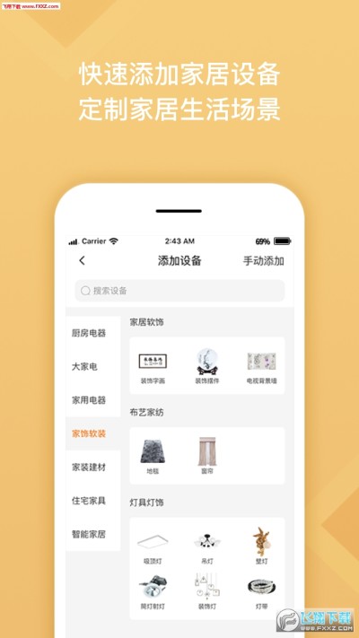 1、设备添加管理:添加家居家电设备,定制家居生活场景