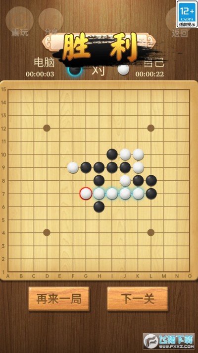 3、精妙的五子棋残局关卡设计,还有专业的禁手模式,内置8种不同等级的AI。