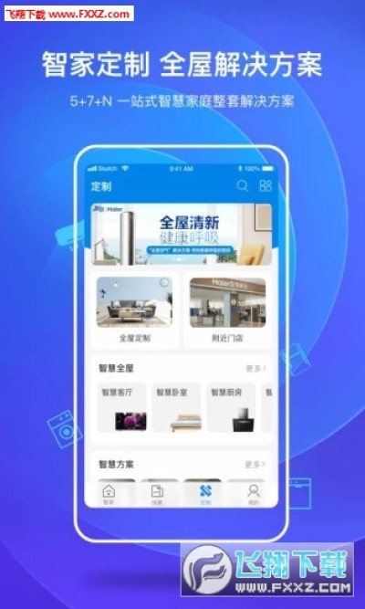 海尔智家的成套定制方案为你带来5+7+N的智慧生活体验和全场景的生态服务。你可以享受专属的海尔智慧家装定制方案,和5大智慧空间、7大智慧方案及N多生态的定制解决方案;