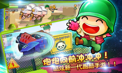 《炮炮快跑》是一款改编自动漫《炮炮向前冲》的跑酷游戏,玩家在游戏中带着绿色钢盔的卖萌小炮兵跟他的小伙伴们一起奔跑,一起踏上了拯救伙伴的征途。最新颖的团队跑酷,你从来都没有见过的跑酷。让无敌的炮炮带你走进团队狂奔的世界。