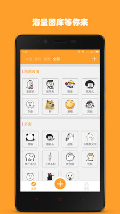 4、制作中心,我们为您提供了海量的素材,您可以发挥您的脑洞,创造出斗图界的经典之作。