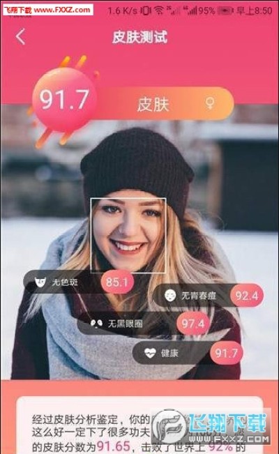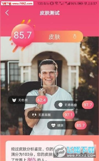 智能人脸测试app,推荐给大家,这是一款非常好用的智能人脸测试软件,在这里您可以使用这款软件进行自己的颜值测试、皮肤状态测试等等,而这些测试结果还可以以图片的方式进行好友圈分享哦,心动不如不如行动,感兴趣的小伙伴们快来下载使用吧!