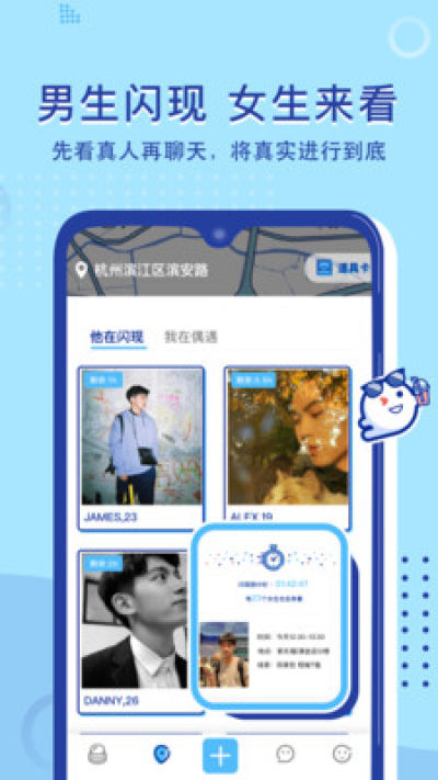 男生发布时间、地点、照片线索,成功闪现;女生对照闪现卡信息,悄悄见真人。