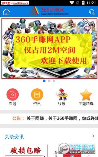 360手赚网是一款专业的手赚服务平台,平台拥有最新手赚资讯,拥用手赚攻略评测等,拥有超丰富手赚资源,可以帮助用户轻轻松松手机赚钱!