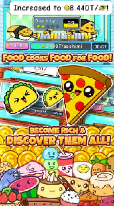可爱的食物们是款有可爱风格的游戏,游戏当中玩家要运营一个餐厅,不断地升级会获得新的食物,也会获得金币,游戏还有许多的可爱的表情包,有喜欢的朋友赶紧下载来试一下吧!!