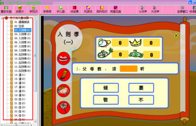 这是一个非常实用的弟子规学习软件,通过歌词和动画让人轻松易懂,非常适合儿童使用。这款软件将原文制作成歌词,朗朗上口,寓教其中,力求简单、上口、好听、朴实、清新和自然,富于感染力,是教育儿童的最佳工具!