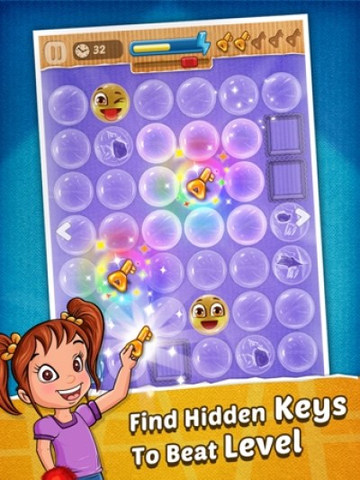 游戏操作很简单,你可以尽情将五颜六色的泡泡扎破吧,只需要用手指将箭头左右移动即可。游戏共设30个关卡,并有两种游戏模式可以选择。游戏画面颜色很鲜艳。连续地扎破泡泡来挑战高分的同时或许也可以减压。