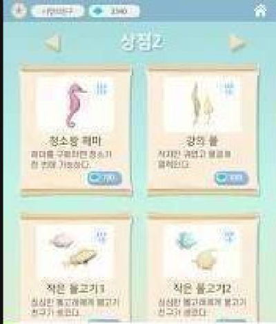 你可以透过喂食、呵护、沐浴和清洁来赚取经验值和贝类硬币。