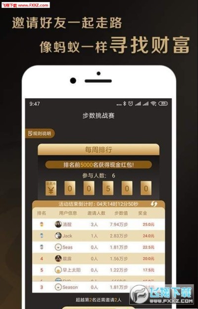 挑战赛:周榜:每天走路的步数累计起来,谁的步数更多呢,上榜可获得现金奖励哦