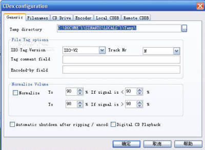 CDex能抓取CD 音轨不失真的转换成WAV文件或者直接转换成MP3文件,本身已有编码功能 ,并不需要外挂其它的编码软件,支持ATAPI及SCSI光驱,另外也能播放CD。