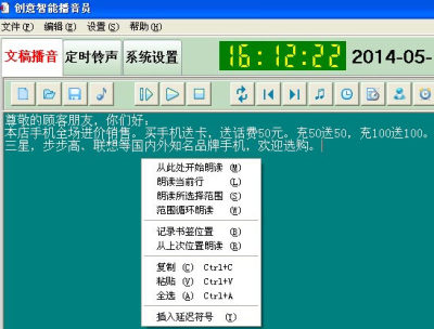 1、定时播音员可以定时循环朗读语音广播内容,也可以随时手动播放广播内容。