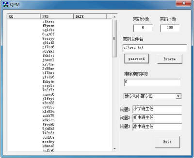 2、对于小写字母和大小字母的密码组合,特定生成为qq密保的三个问题,和班主任有关的问题。