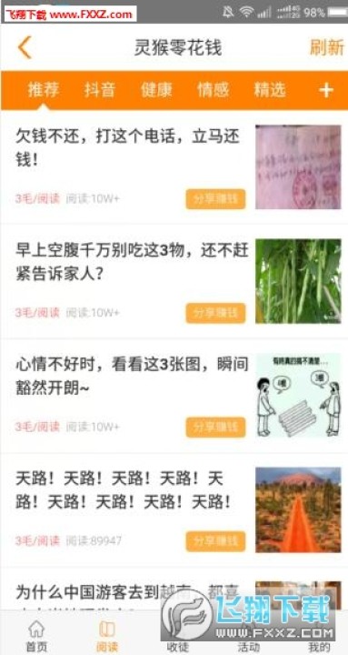 灵猴零花钱app是一个阅读和分享文章资讯就可以获得收益的网赚平台,这里的资讯内容丰富且优质,让用户能够放心的转发,且点击量更高,现在新用户登录就送2元,可直接提现哦,感兴趣就下载灵猴零花钱app体验吧。