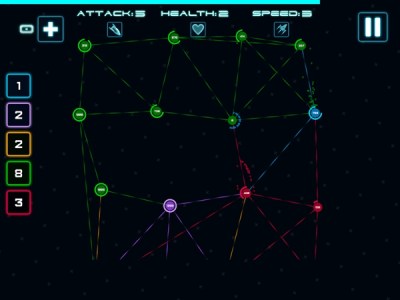 游戏重点讲究策略。最开始你控制了一个据点,然后不断产生兵力去攻击敌国!千万要小心,当你兵力在外的时候,有可能后院起火哦。你还可以升级你小兵的能力!