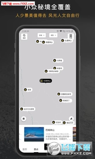 秘境景点,即兴选择:创建景点地图,支持多种搜索方式,获取“人少好玩”目的地,走到哪儿玩到哪儿,想玩啥就玩啥。