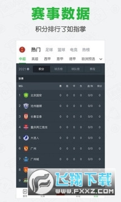 最快的赛事分析:球队进去战绩、历史交锋;最全的统计数据:联赛/杯赛积分榜,球员榜一应俱全。