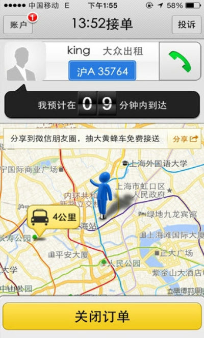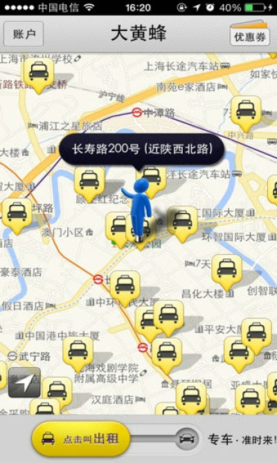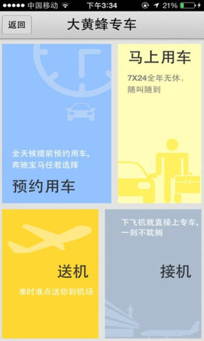 出租车:一键下单,让司机主动来找你。免去路边扬招刮风下雨晒太阳还被拒载的烦恼。