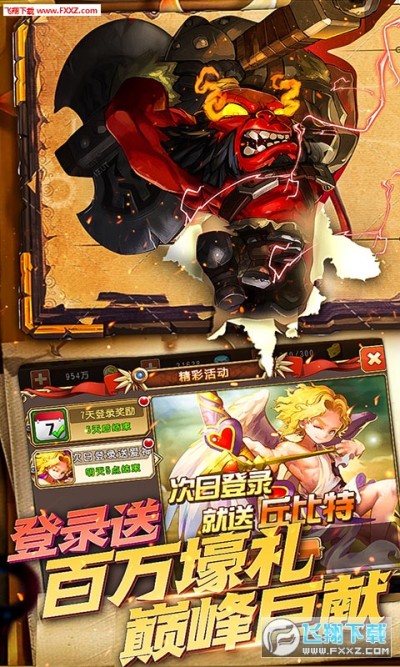 1、上线送满V,达到6级直接获得满级VIP,不花一分钱。上线还送22888钻石、1000000金币、300体力。