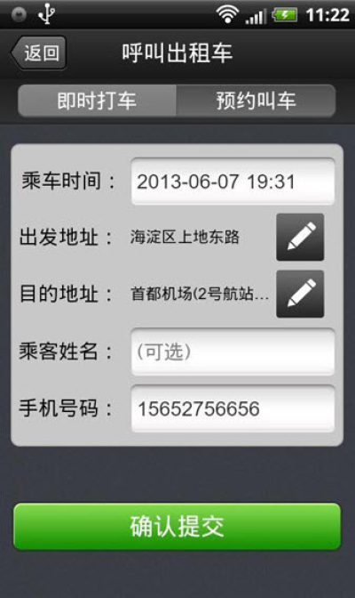 该应用内置寻呼系统内核和地图定位搜索内核,双核无缝衔接,你通过输入所在位置及目的地,即可轻松、精准呼叫和预定正规出租车。呼叫成功后,你能即时准确获知出租车司机姓名、车牌号、所属公司及相互之间的距离。