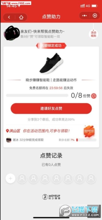 ①每位好友可给你1份“赞”,集齐8份“赞”可一折体验价值299元晓步赚赚智能鞋一双,男女老少通款,鞋码为36-44码。