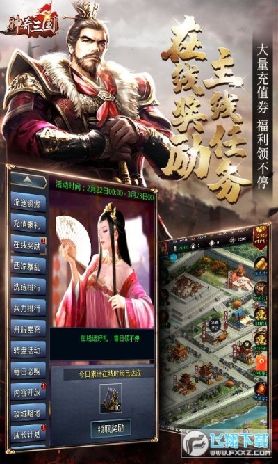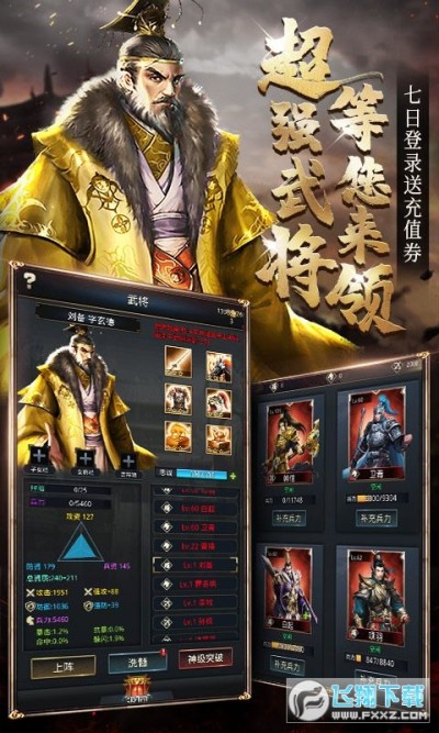 ★福利2:充值比例1:500,七日登录送充值券、金色装备、红色装备、女将碎片、超强武将典韦,大量材料等您来领取!