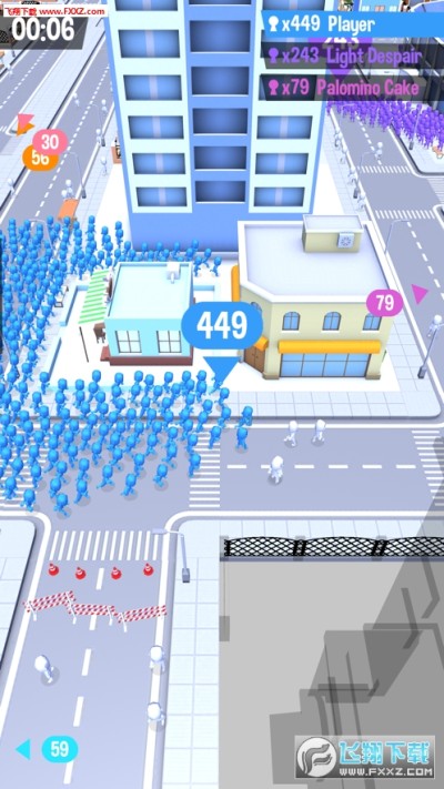 Running City是一款休闲益智多人对战游戏,在城市之内参与拥挤人群对决,去说服城市之中的人加入你的队伍,玩家们在游戏里面招募各位闲散的人群,不断的壮大自己的队伍,让你看到其他玩家的人群的时候还能进行一场激烈的竞争,吞噬掉对方的人群,让自己的队伍变得更加的壮大。