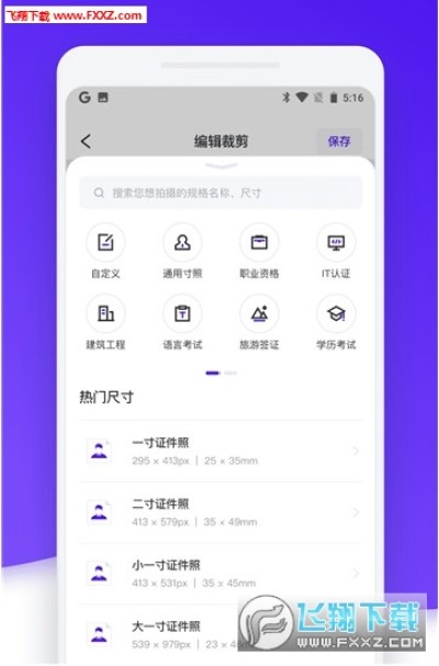 支持选择500+种规格尺寸,多种证件照场景分类帮助你快速选择