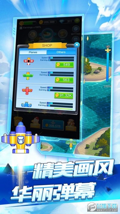 3、各种精致豪华款式的空中战机可以任你选择,解锁终极的战机,体验强悍的战斗力。