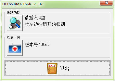 UT165主控U盘修复工具是一款适用于ChipGenius检测主控为UT165的U盘的修复工具,又叫UT165 RMATools v1.07,绿色免费的软件。