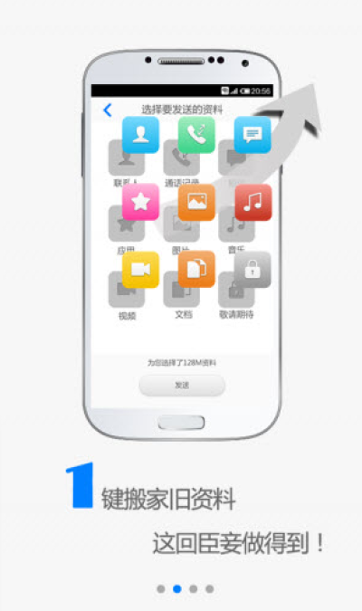 换机精灵能够将旧手机资料一键传到新手机上来,包括的资料有联系人、通话记录、短信、应用、照片、音乐、视频、文档等等,并且传输非常快,是你手机换机必装的app应用。