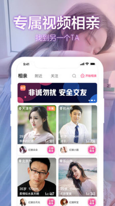 全新相亲服务模式,专业三方视频相亲社区,视频连麦聊一聊,让彼此更好认识交流。