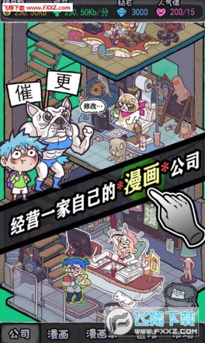 人气王漫画社是一款漫画风格的经营养成手游,玩家将接手一下快要倒闭的漫画社,通过尝试各种题材的风格来提升阅读量,还可以培养员工技能来提高其的作画质量和效率,快来下载人气王漫画社体验一下吧!