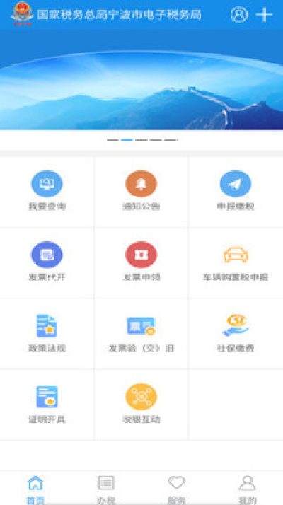 宁波税务局app是国家税务总局宁波市税务局官方推出的手机客户端,这款软件可以为用户提供非常方便全面的手机办税服务,包括手机上预约办理税务,也能手机上代开电子发票,还有税务缴费等等!