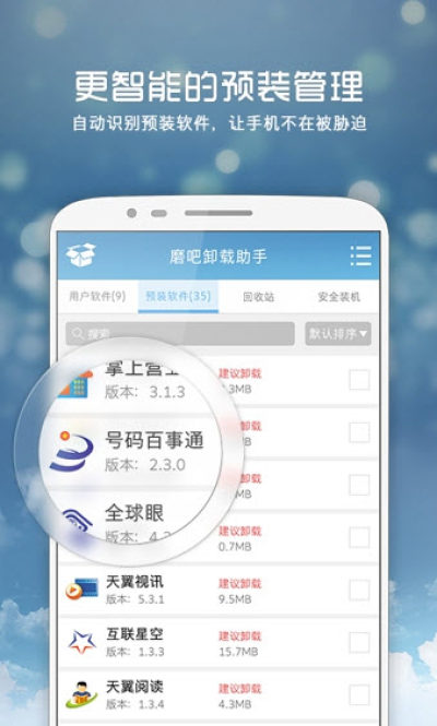 磨吧卸载助手愿做手机的贴心小伙伴, 它体积小、功能强,不刷机也能轻轻松松还手机一个干净的系统, 是卸载预装软件的必备神器。