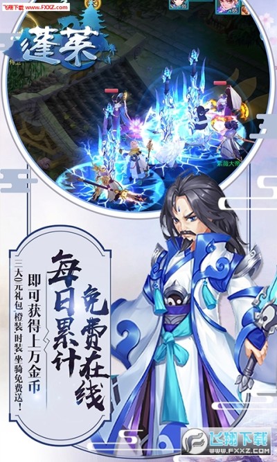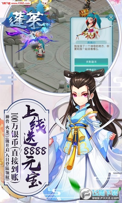 蓬莱百万银币福利手游是一款十分好玩的休闲Q版仙侠类型的手游,轻松的游戏玩法搭配上Q萌无比的人物造型,上线就领取超级神兽以及百万银币的免费奖励,喜欢的小伙伴赶紧来下载这款蓬莱百万银币福利手游吧~