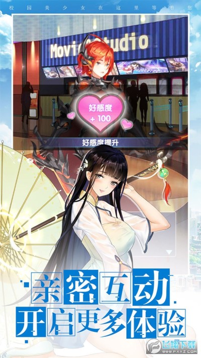 与百位靓丽校花双修升级,live2d看板娘全天甜蜜互动,亲密约会获取女神心动相册
