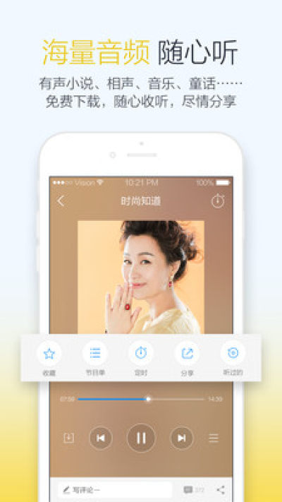 海量内容:数百名在线主播!新闻,笑话,音乐,星座,相声,小说,游戏,军事历史,海贼王,郭德纲,盗墓笔记等优质内容,以及篮球,足球, NBA,德甲,英超,世界杯等赛事播报。我们不是豆瓣电台专注音乐,我们不是蜻蜓全电台收录,也不像懒人听书专注有声小说,多听,总能找到你期待的声音!