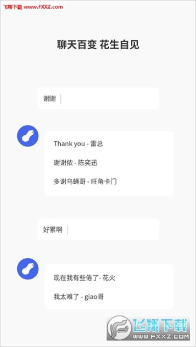 聊天太闷?你需要花生陪你一起发声- 超多歌词、台词、综艺等音频等你分享- 按场景分类,3秒找到你要的- 随意聊天,花生会为你智能匹配有趣音频一起下载惊喜吧!