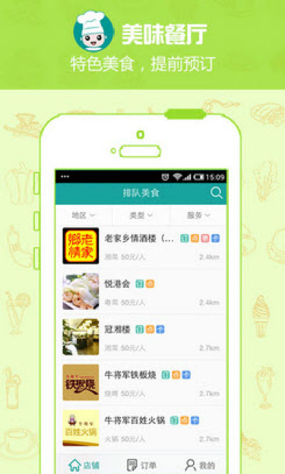 【随身餐馆】变楼下、商圈和景点餐馆为自家厨房,随时随地点菜和预订,吃饭不用让家人和女友等;