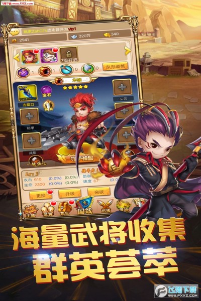 1、在游戏中有非常Q版的三国人物,极具特色的创新玩法;