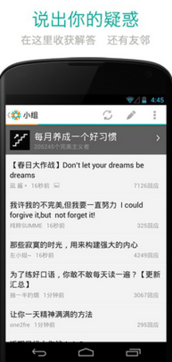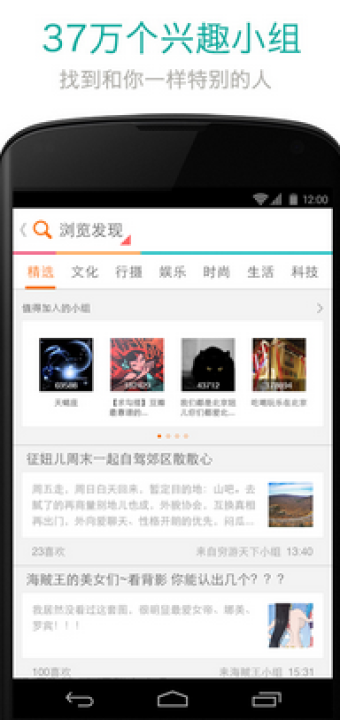豆瓣小组是豆瓣网开发的一款android手机应用,豆瓣小组是一个文艺青年聚集地的软件可以帮助用户查看豆瓣首页活跃小组,目的是让用户更便捷的参与豆瓣小组的讨论和热点。豆瓣小组安卓手机客户端,轻轻松松找到最活跃的兴趣小组,随时随地参与最火热的话题讨论。