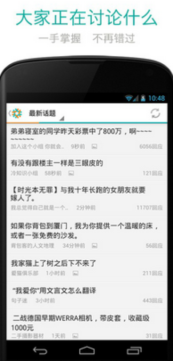 1.浏览最新话题,支持含单张图片的话题发布,支持包括点对点回应的评论。